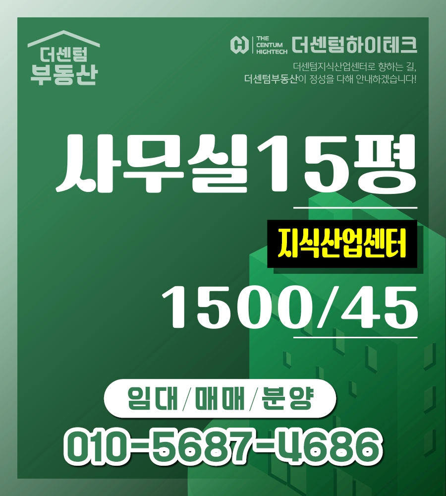 더센텀하이테크(지식산업센터)사무실 · 업무에만 집중하세요 · 15평 (약 49.59 ㎡) · 임대1500 / 45 / 매매