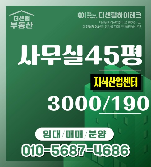 사무실 45평 (약 148.76 ㎡)3000 / 190 (부가세별도)" 대형..