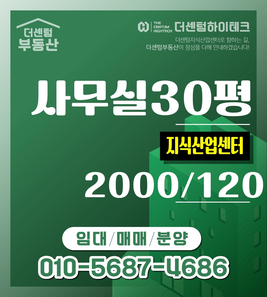 더센텀하이테크(지식산업센터)사무실 · 당신의 명함에 새겨질 가치 더센텀 · 30평 (약 99.17 ㎡) · 임대2000 / 120 / 매매0